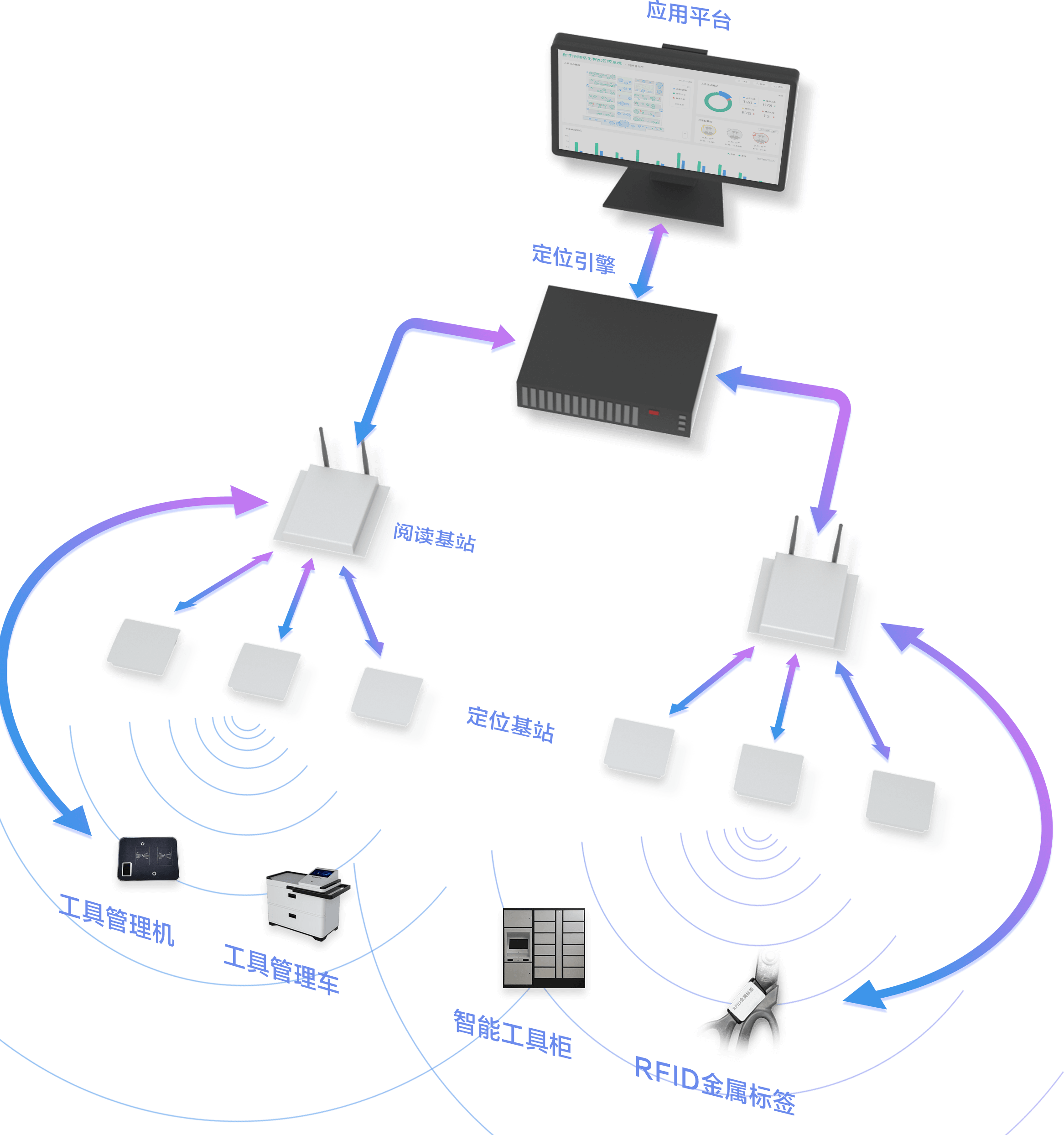 中芯微工具管理系统运用无线射频识别技术(即RFID技术),使工器具具备被识别、被监控的能力,通过智能在位检测终端、出入检测终端、手持终端等设备对工具注册、使用、出入、在位、等环节进行全程管控、规范日常核查清对工作,减轻管理人员的劳动强度,消除随意传递、随意存放、随意携带外出等问题,避免相关人员疏忽带来的重大安全事故,全面提高重要工器具的安全防护水平,主要应用于监狱、戒毒所等场景中。