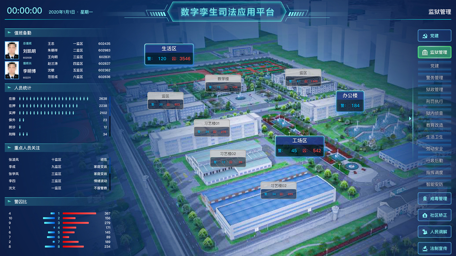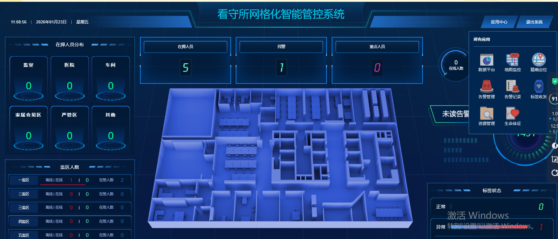 通过高精度定位技术,实现对人员、物资的实时位置追踪与轨迹还原,构建监所数字孪生体,让监管态势一目了然。