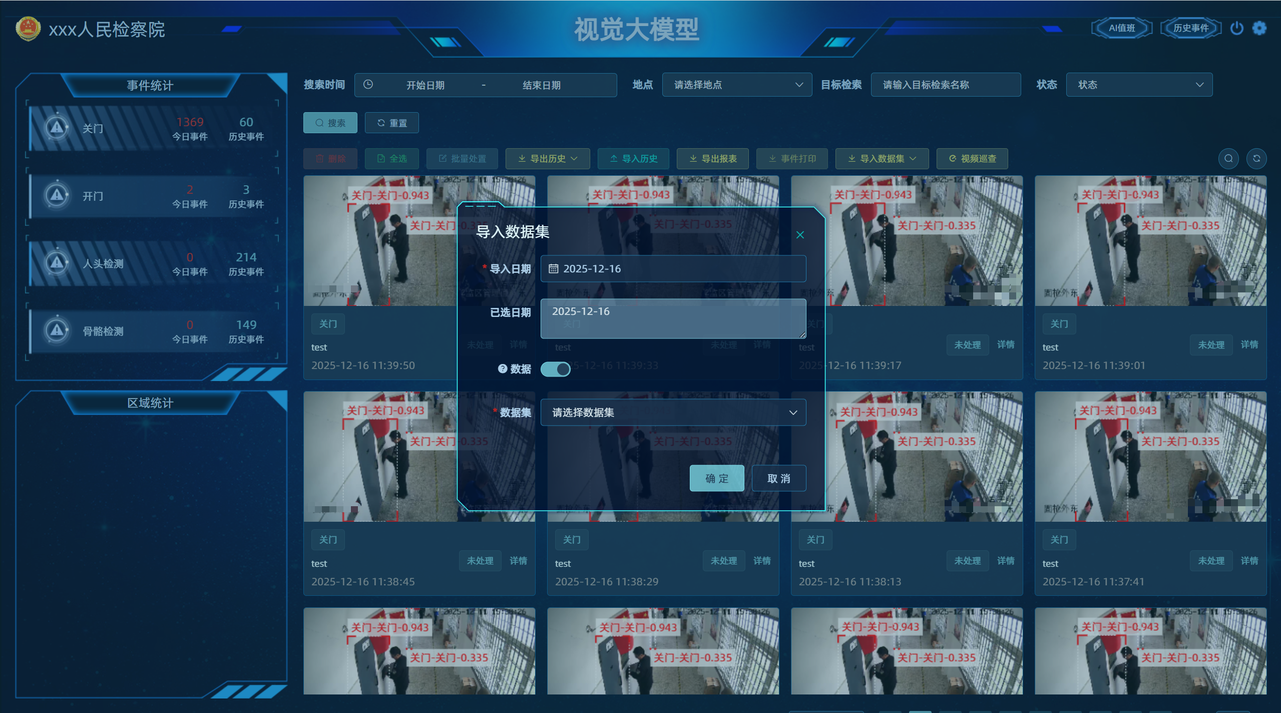 机器看视频(行为分析)利用监舍、放风场、审讯室、会见室、值班室、周界、AB门等重点区域的监控视频,赋能人工智能技术,使机器具备对视频内容的理解和分析能力,自主分析在押人员打架、独处、攀高、监舍值班离岗、放风时监舍出现人员滞留、外来人员或在押人员出现时无人看管、违规使用电话等问题,实现让系统监管辅助人工值班,发现问题及时预警,并生成关键事件结构化数据,减轻瞪眼班的工作压力,预防在押人员非正常伤亡、预防袭警等监管安全事故。
