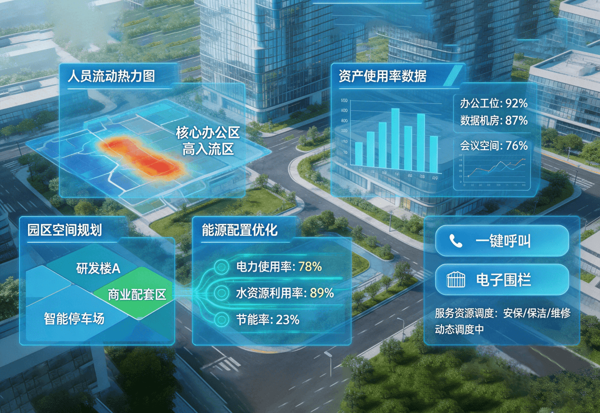 基于对人员流动记录、资产使用率等数据的深度分析,园区可科学优化空间规划、能源配置与服务资源调度。同时,一键呼叫、电子围栏等功能可精准匹配服务需求,显著提升整体运营效率与服务质量。