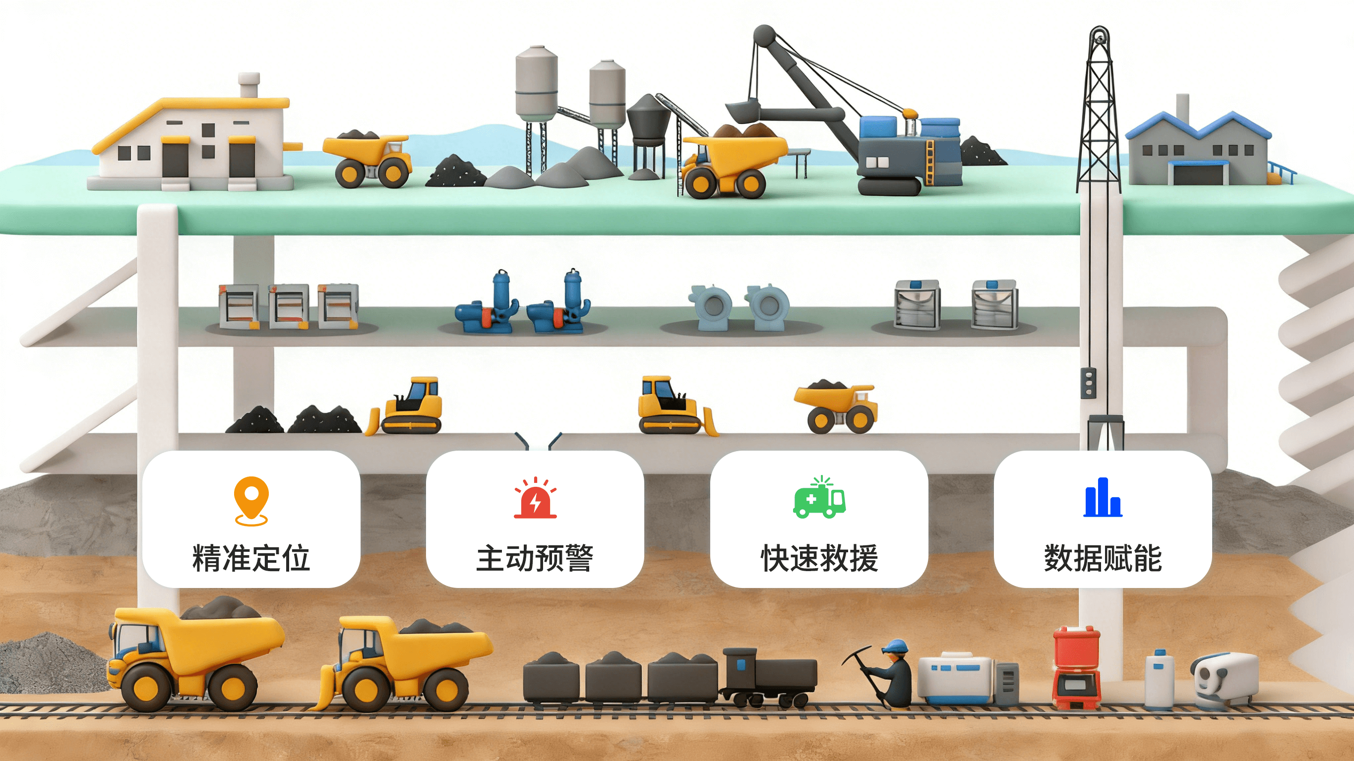 通过人员轨迹回溯、作业数据分析等功能,为安全管理、生产调度提供数据支撑,推动矿井管理向数字化、智能化转型升级,全面提升运营效率。