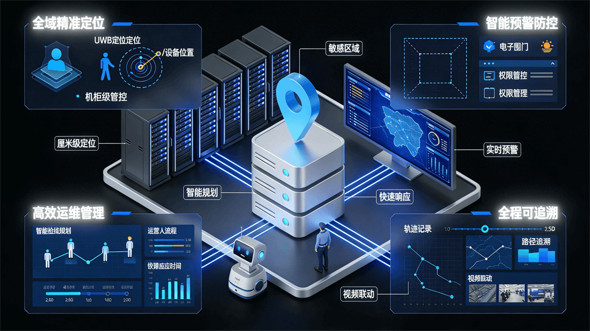 部署了高精度可视化定位系统。系统采用多技术融合方案,实现对地下廊道、机房核心区、冷却水管道层等区域的全面覆盖。